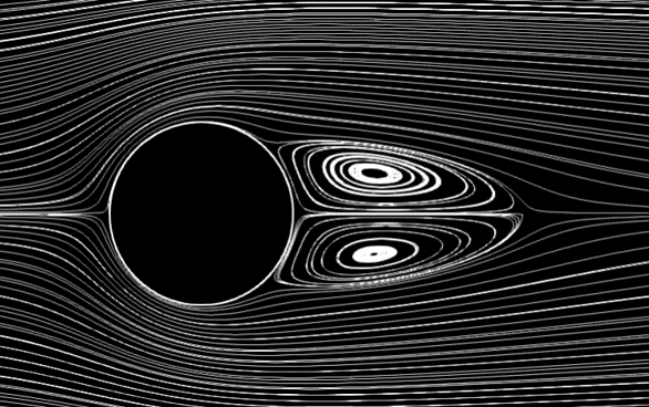 - Figure 96: Kármán vortex street behind a circular cylinder at R=105.