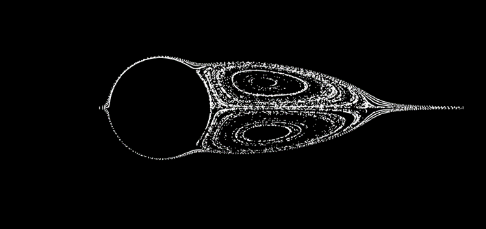 - Figure 96: Kármán vortex street behind a circular cylinder at R=105.