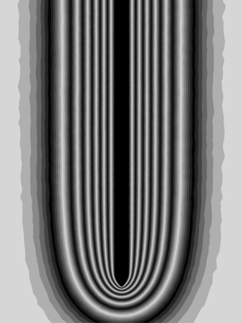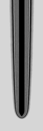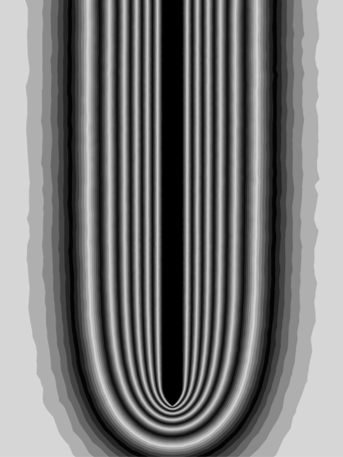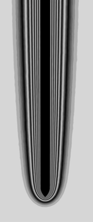Finally, we compare the simulation results for the Boussinesq approximation to the experimental photograph. The researchers estimate a plate temperature of 318.2 K at the moment the picture was made (as derived from their stated value for the Grashof number: \(Gr = 5 \cdot 10^6\)). However, a best simulation match is found for a temperature of 323.3 K (corresponding to \(Gr = 9 \cdot 10^6\)). We consider this 5-degree temperature within uncertainty tolerances, as the researchers do not mention the plate temperature explicitly, nor do they state the equation and values they used to determine the Grashof number. For this plate temperature, we obtain: