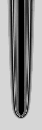 The sliders below then show the two approximations using three different initial temperature differences between the plate and the fluid (respectively: 0.3 K, 30.3 K, and 336.4 K, corresponding to Grashof numbers of \(0.1\cdot 10^6\), \(9\cdot 10^6\) and \(100\cdot 10^6\), respectively). The gray-scale visualization is obtained by plotting the temperature field and then setting the bounds of a colorbar to the room temperature and plate temperature, and by choosing as many black-to-white intervals as there are bands in the experimental photograph.